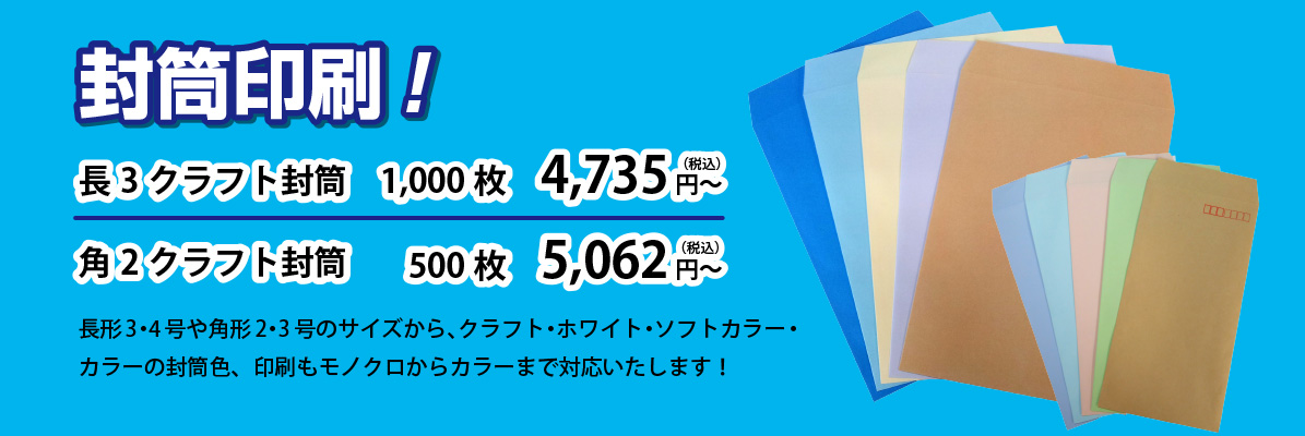 封筒印刷、Tシャツ、マグカップは〈プリントGO〉にお任せください。